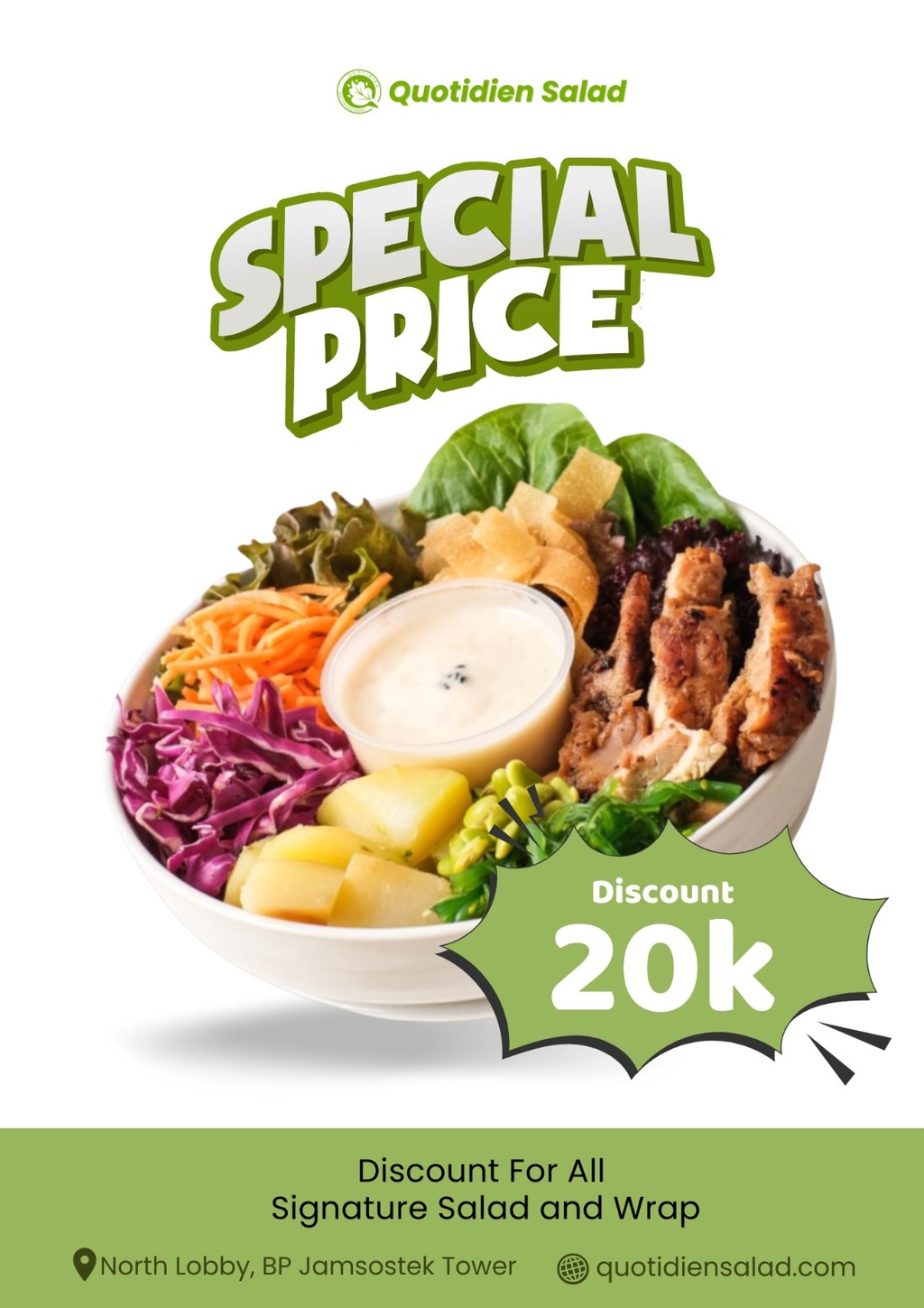 Signature Salad & Wrap di Quotidien Salad sekarang lagi potongan harga diskon 20K π