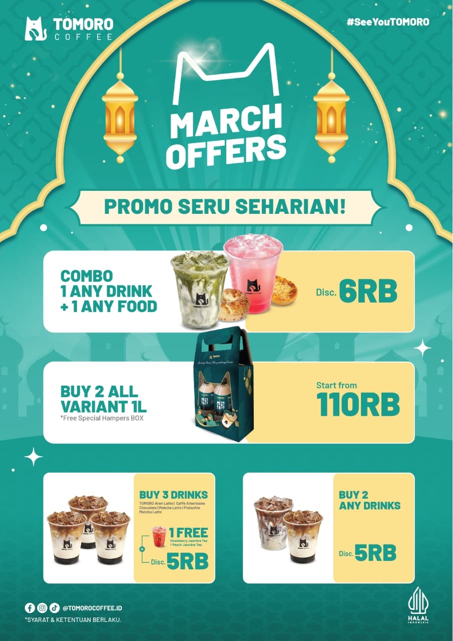 Bulan Maret lebih asik, lebih hemat, dan pastinya makin lengkap bareng TOMORO COFFEE ♥